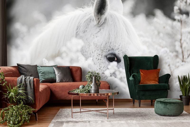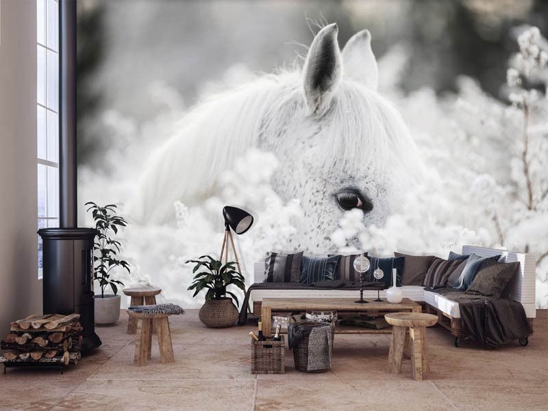 Het fotobehang is van het witte paard is de perfecte aanvulling op iedere ruimte.