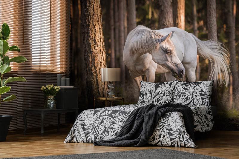 Het fotobehang van het witte paard is de perfecte aanvulling op iedere ruimte.