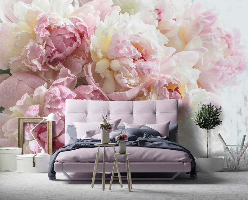 Het fotobehang van de pioenrozen is een unieke aanvulling op iedere ruimte.