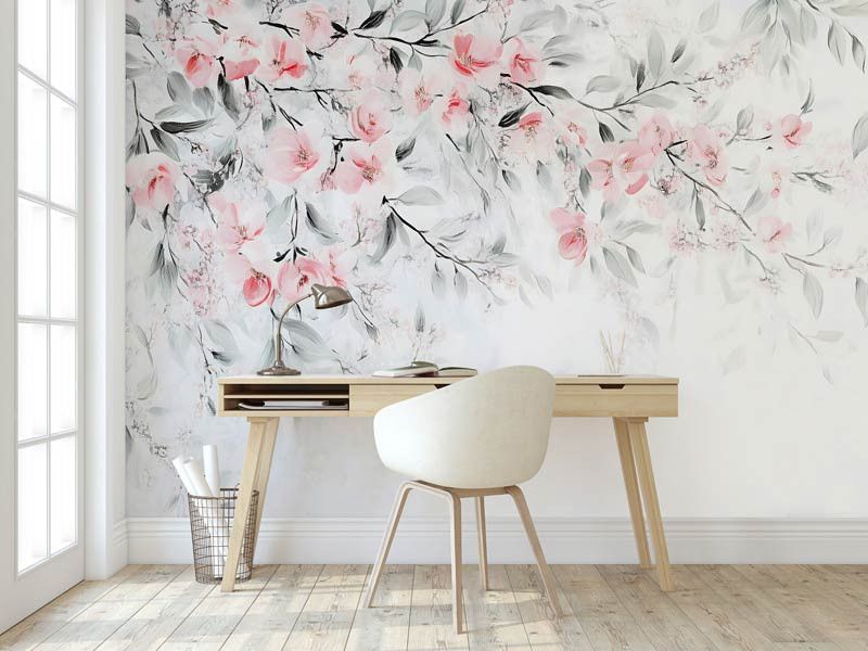 Breng een vleugje poëzie aan je muur met dit fotobehang van zachte bloesemtakken in aquarelstijl. De verfijnde bloesems lijken als geschilderd en geven een gevoel van lente, lichtheid en romantiek.