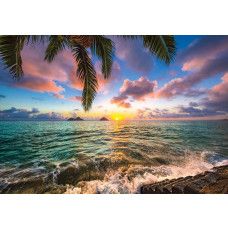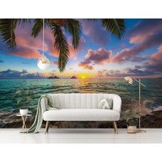 Fotobehang van het schitterende uitzicht op de zonsondergang boven de helderblauwe zee.