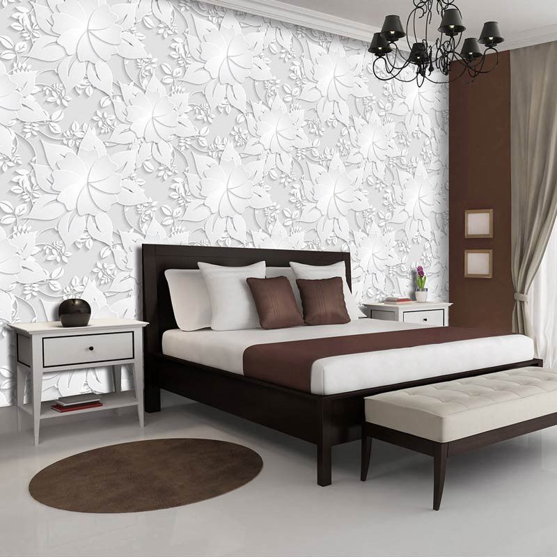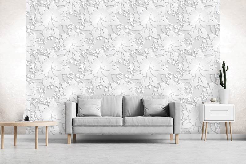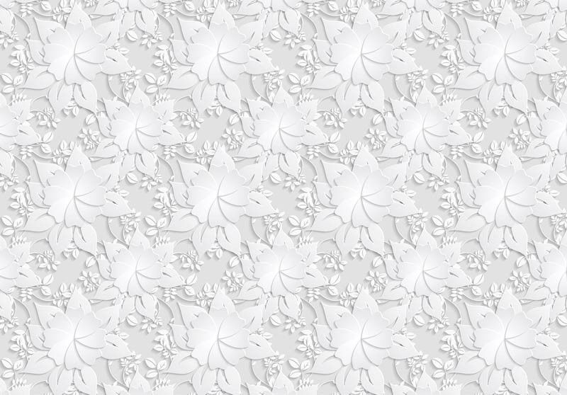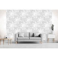 Vlies fotobehang van een abstract, zilveren bloemenpatroon.