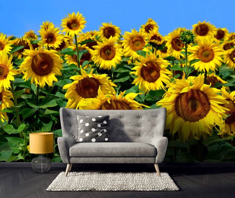 Het fotobehang van de zonnebloemen is een echte eyecatcher in de: woonkamer, slaapkamer, hobbykamer, keuken, hal, kantoor of iedere andere ruimte.