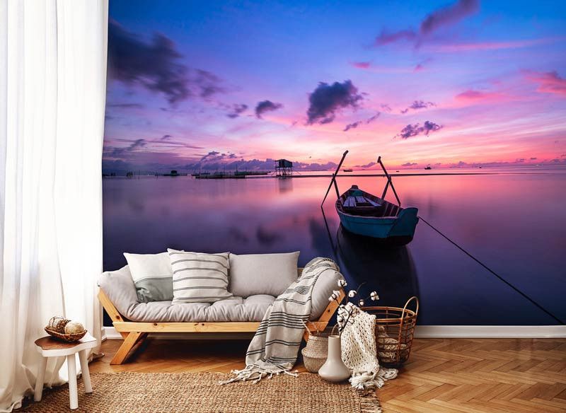 Het fotobehang van de zonsondergang is een unieke aanvulling op iedere ruimte.