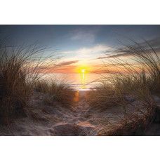 Fotobehang van een schitterende zonsondergang boven zee, gezien vanaf de duinen en het strand.