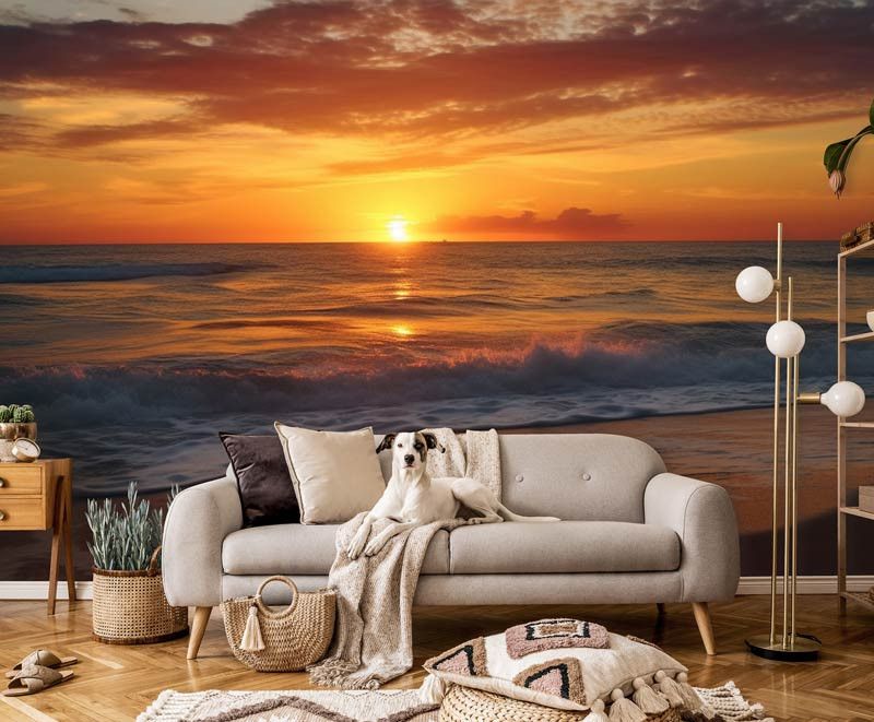 Transformeer je interieur met ons Fotobehang Zonsondergang aan Zee en geniet elke dag van de rustgevende uitstraling van de kust.