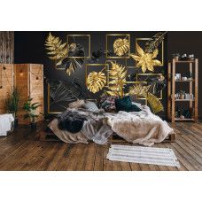 Fotobehang Zwart-Gouden Bladerenpracht