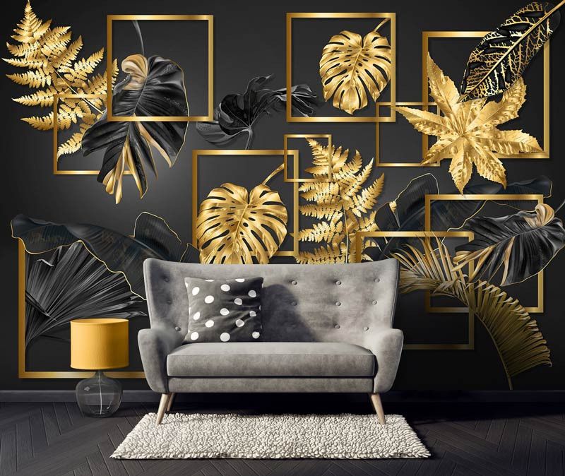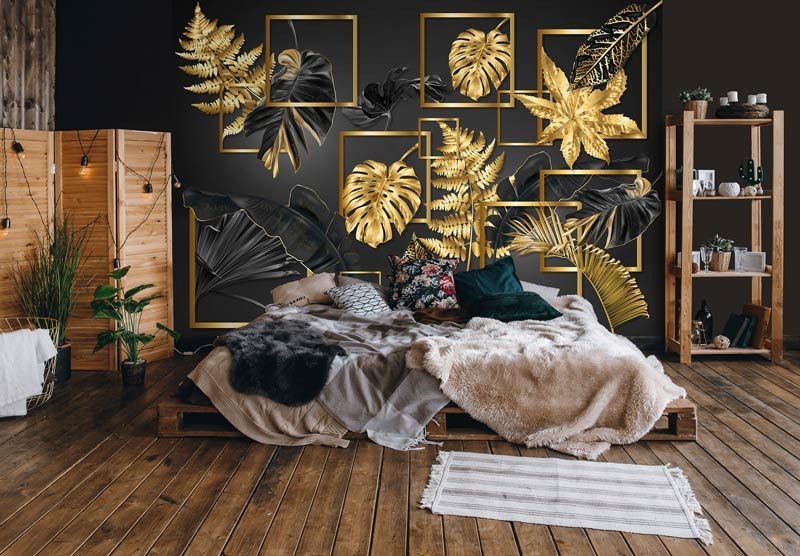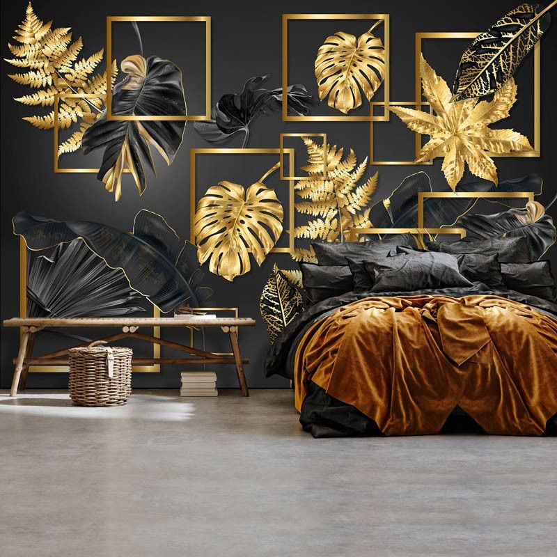 Voeg een luxe en verfijnd accent toe aan je interieur met het Fotobehang Zwart-Gouden Bladerenpracht. De combinatie van diepe zwarte tinten en gouden bladeren creëert een chique en elegante uitstraling, perfect voor de woonkamer of slaapkamer.