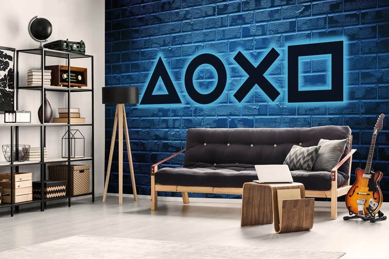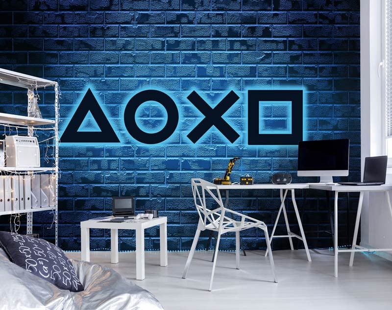 De echte gamers willen ook een mooie gamekamer en daarin kan dit game behang niet ontbreken. Dit opvallende PlayStation game behang brengt de levendige sfeer van een neonverlichte gamewereld naar jouw interieur, perfect voor elke gamer.