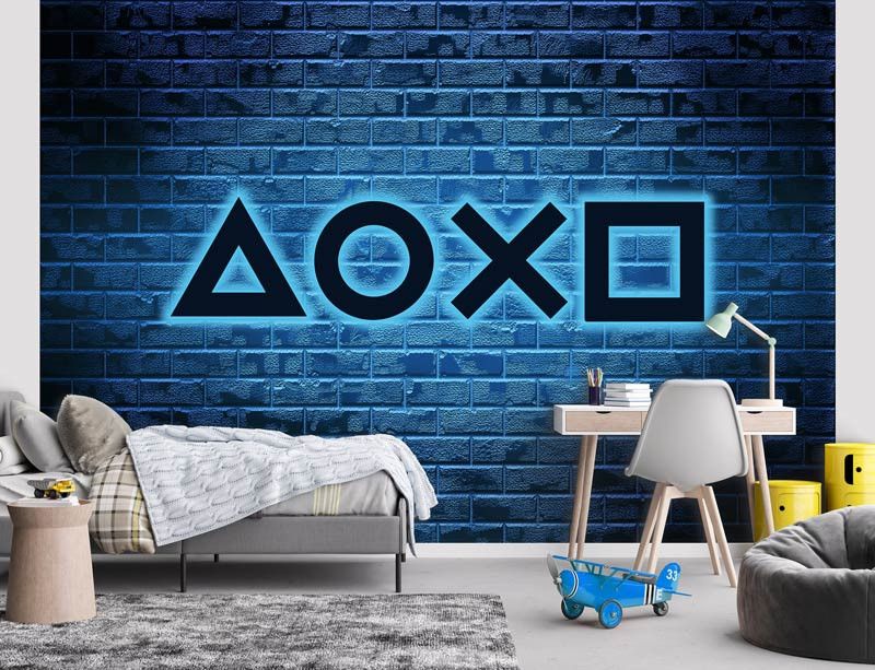 De gedetailleerde neonaccenten en PlayStation game-icoontjes creëren een dynamische en inspirerende omgeving, ideaal voor de gamekamer, tienerkamer, of kinderkamer. Laat je ruimte opvallen met de energie en het plezier van gamen.