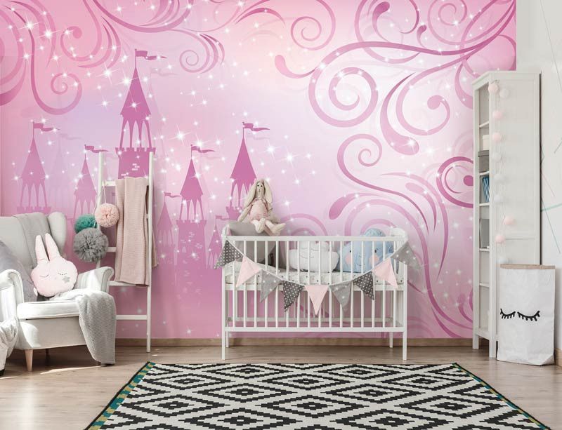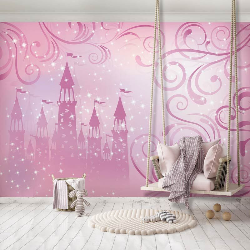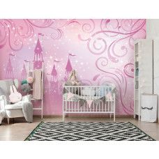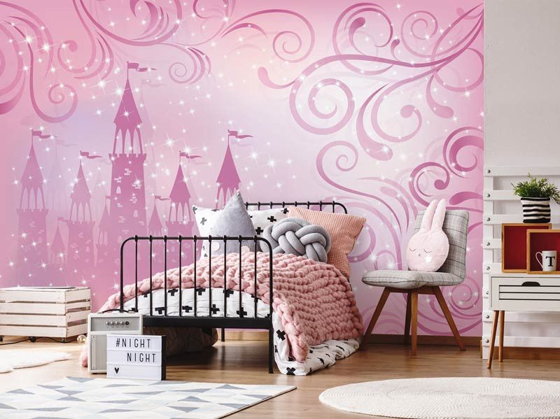 Het fotobehang van het sprookjeskasteel is een schitterende aanvulling op de kinderkamer van elk meisje.