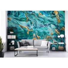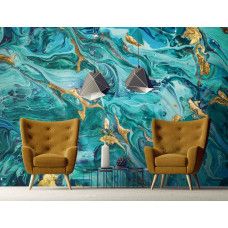 Marmer behang in Turquoise en Goud. Marmer behang is tegenwoordig erg populair omdat het nauwelijks van echt marmer te onderscheiden is.